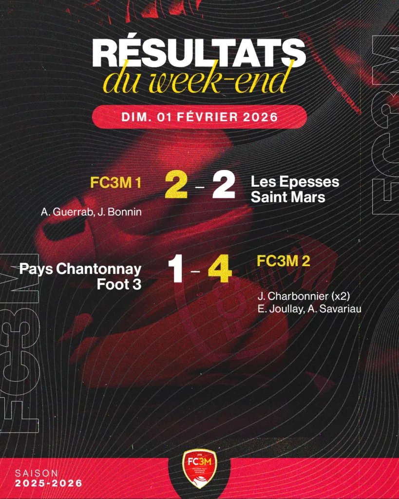 L’équipe première fait match nul face au Epesses Saint Mars, l’équipe réserve gagne 4-1 face au Pays Chantonnay Foot 3.