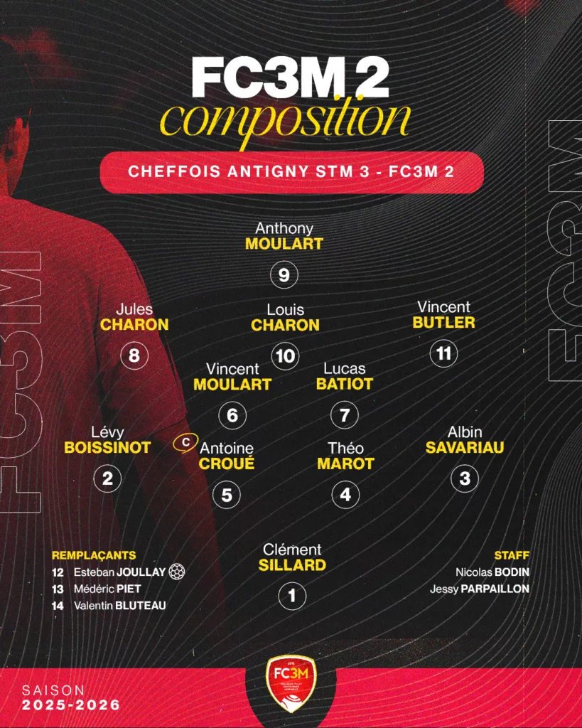 Une équipe des rouges composée de joueurs à 100 %, et d’autres pour qui la fatigue et le manque de concentration ont fait la différence en fin de rencontre. Un triplé de CB9 et un CSC constituent les quatre buts du FC3M.