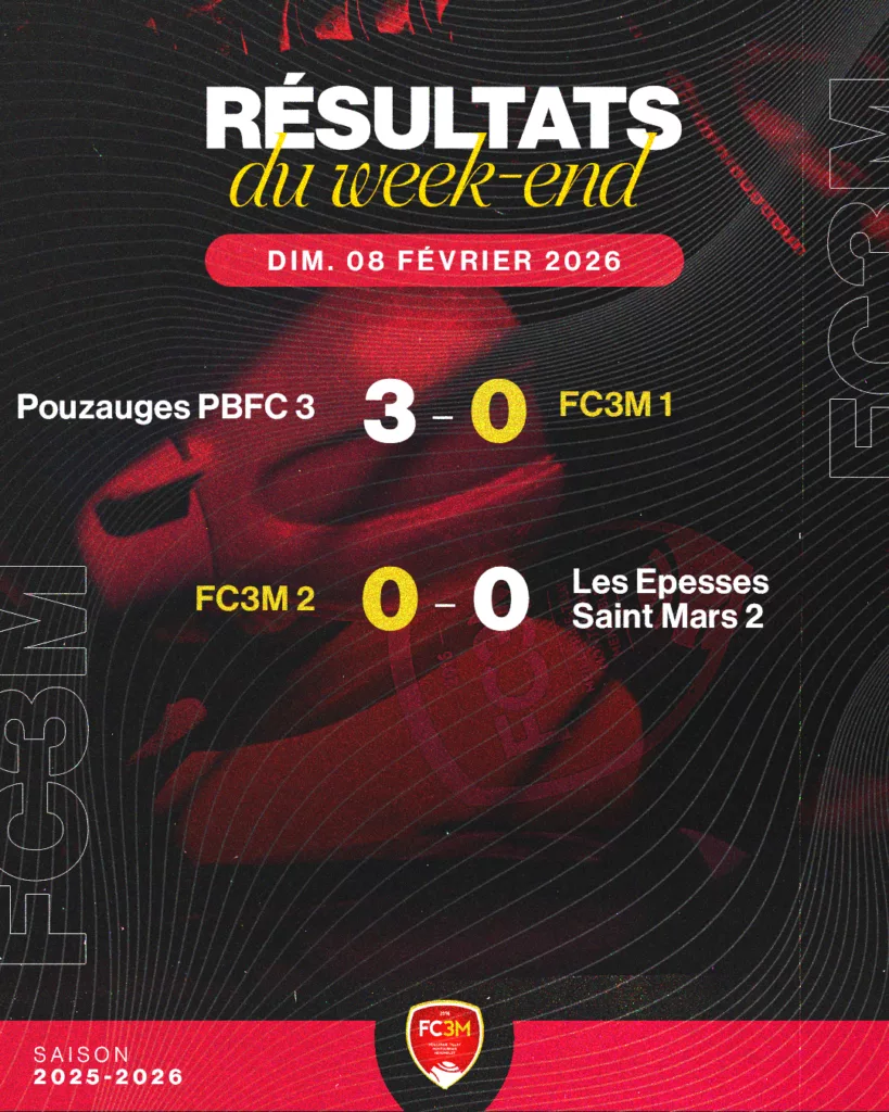 L’équipe première perd face à Pouzauges PBFC 3, l’équipe réserve fait match nul 0-0 face au Epesses Saint Mars 2.
